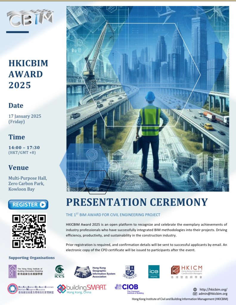 Hong Kong Institute of Civil and Building Information Management (HKICBIM) is a newly formed institute which provides an informative platform for civil and building counterparts to network and exchange civil Building Information Modeling (BIM) knowledge. HKICBIM aims to foster technological innovation and accelerate the adoption of Civil and Building Information Modeling Management in the Architecture, Engineering, Construction (AEC) industry.